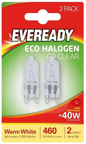 Eveready G9 40W Clear Halogen Capsule Light Bulb - Pack of 2