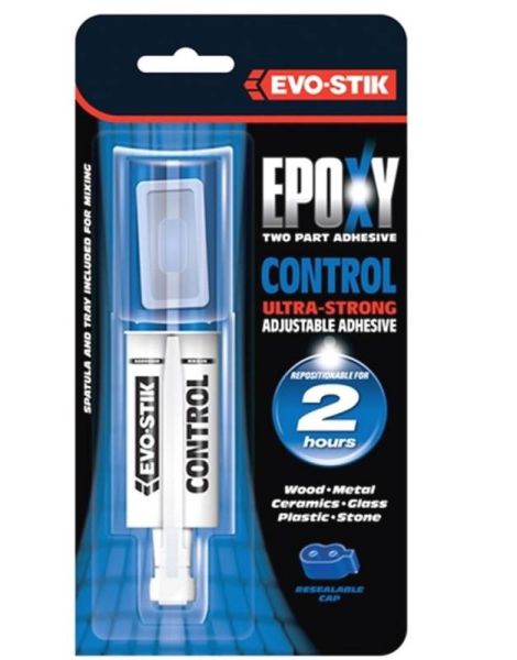 - This Evo-Stik Epoxy Control Syringe is a Extra strong, long lasting bonding agent that can be re-positioned up to two hours after the initial application.