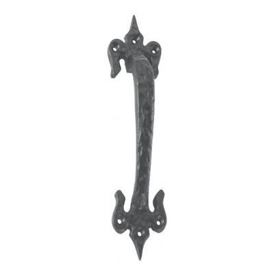 This antique black fleur de lys pull handle adds a traditional decorative finish while providing a practical grip on doors, cabinets or gates.
