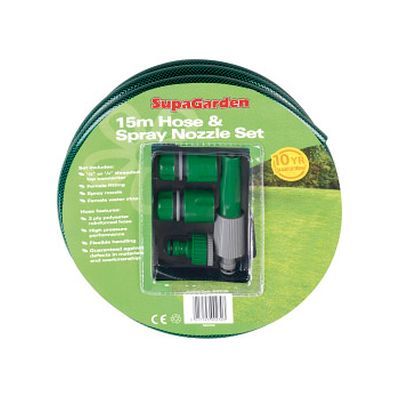SupaGarden Hose & Spray Nozzle Set 15m