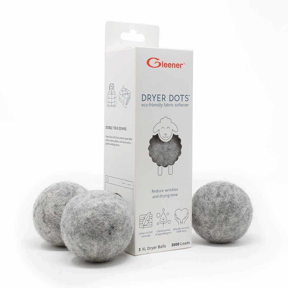- Ethically sourced 100% wool Gleener Dryer Dots soften fabrics with their gentle tumbling motion