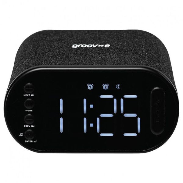 Groov-E Atlas II Alarm Clock Radio with Bluetooth & Wireless Charging Pad Black GVCR06BK