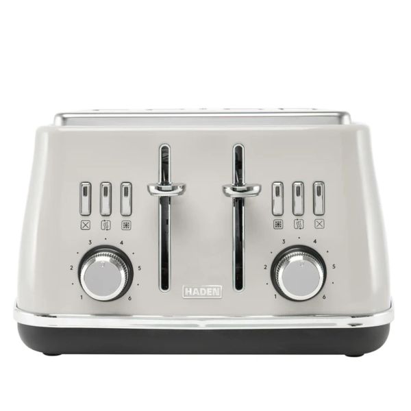 Haden Cotswold 4 Slice Toaster Putty – Retro Style Toaster with Dual Controls and Wide Slots