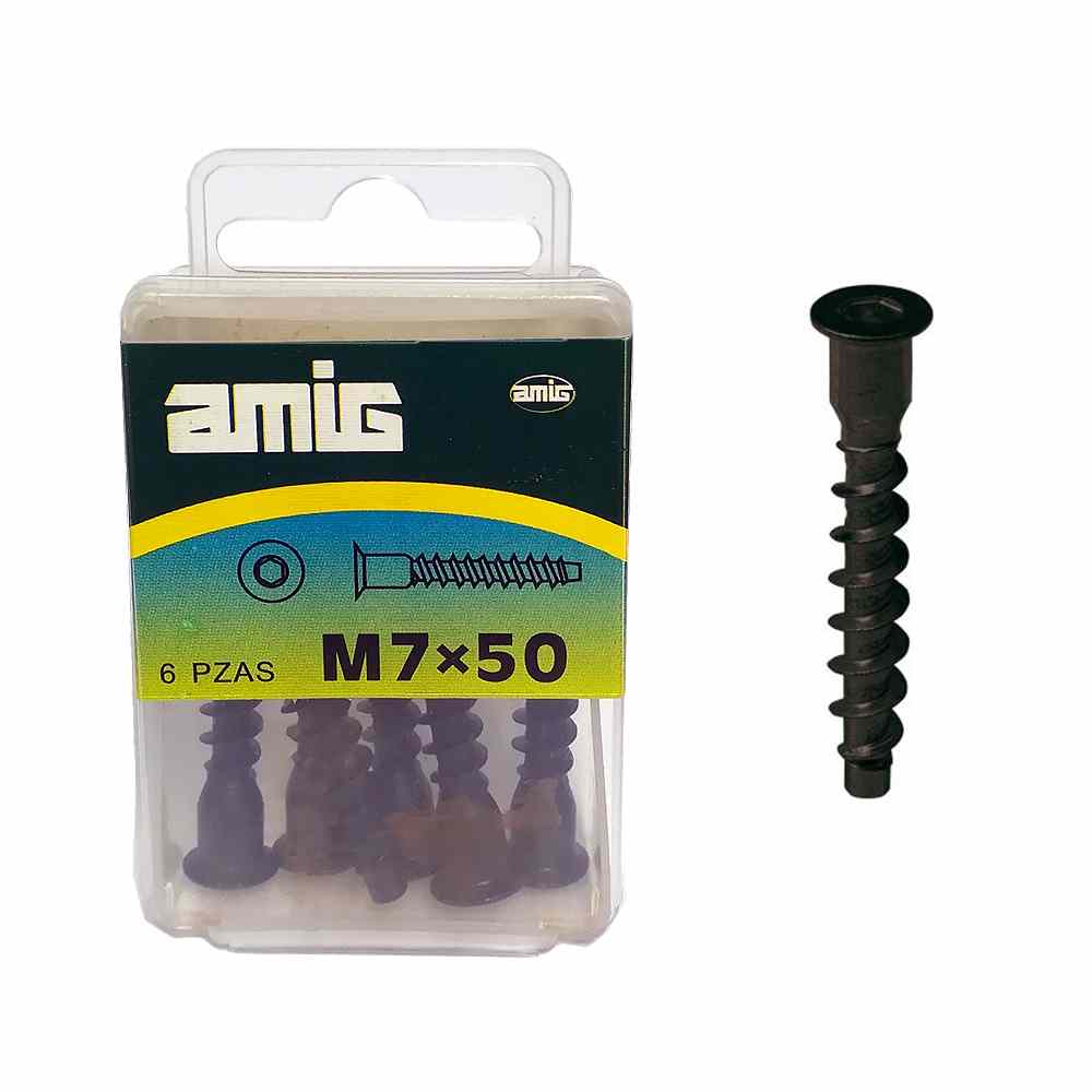 Amig Black Furniture Screw - M7 x 50 - Pack Of 6