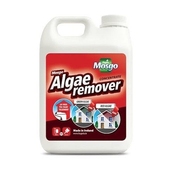 - Mosgo Algae Remover, removes green or red discolouration caused by algae and prevents it coming back. Ideal for creating a clean base before painting walls.