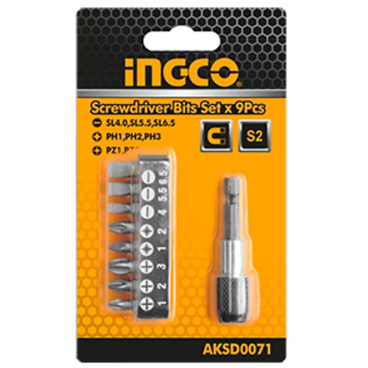 Ingco 9 Piece Screwdriver Bits Set | S2 Steel Bits with Quick-Release Holder