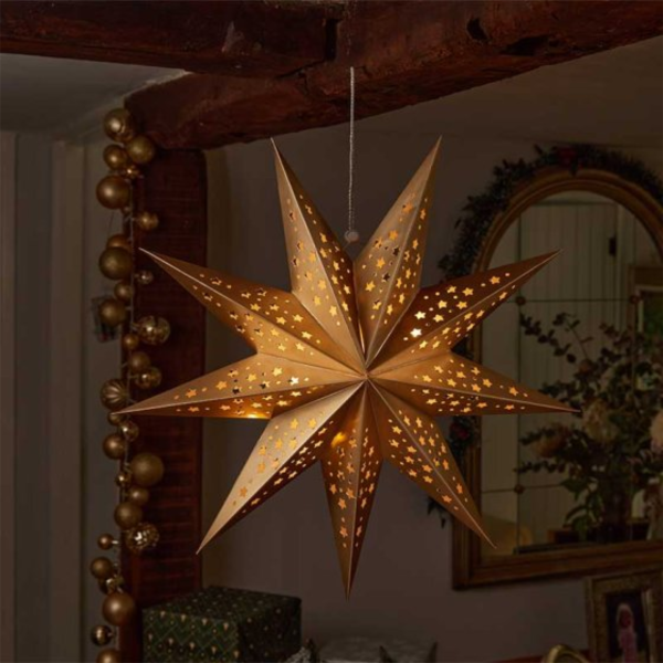Striking paper star design with a gold finish brings sophistication to your festive décor.
