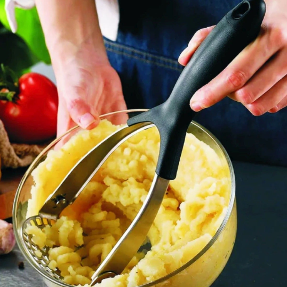 Comfortable grip for smooth and controlled mashing.