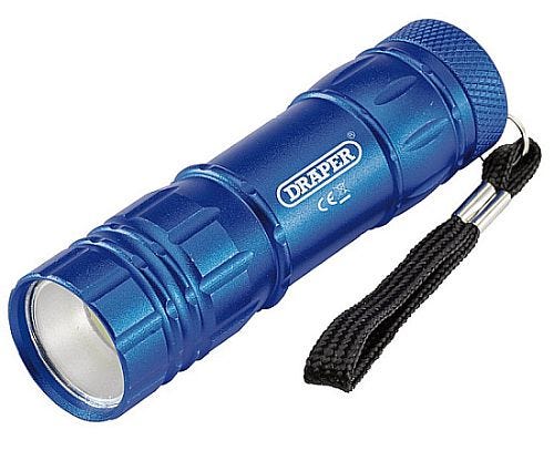 3 - watt aluminium hand torch manufactured from quality aluminium, fitted with a bright 85 lumen COB LED light. Supplied with 3 x AAA batteries. Multiples of 12 only in four metallic colours (silver, blue, red and green)