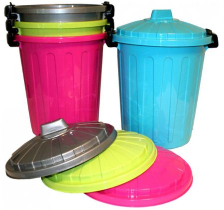 - This trash can is made of sturdy and durable plastic and has a removable lid.