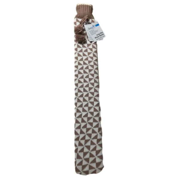 Blue Canyon Long Hot Water Bottle - With Brown Wedge Knitted Cover