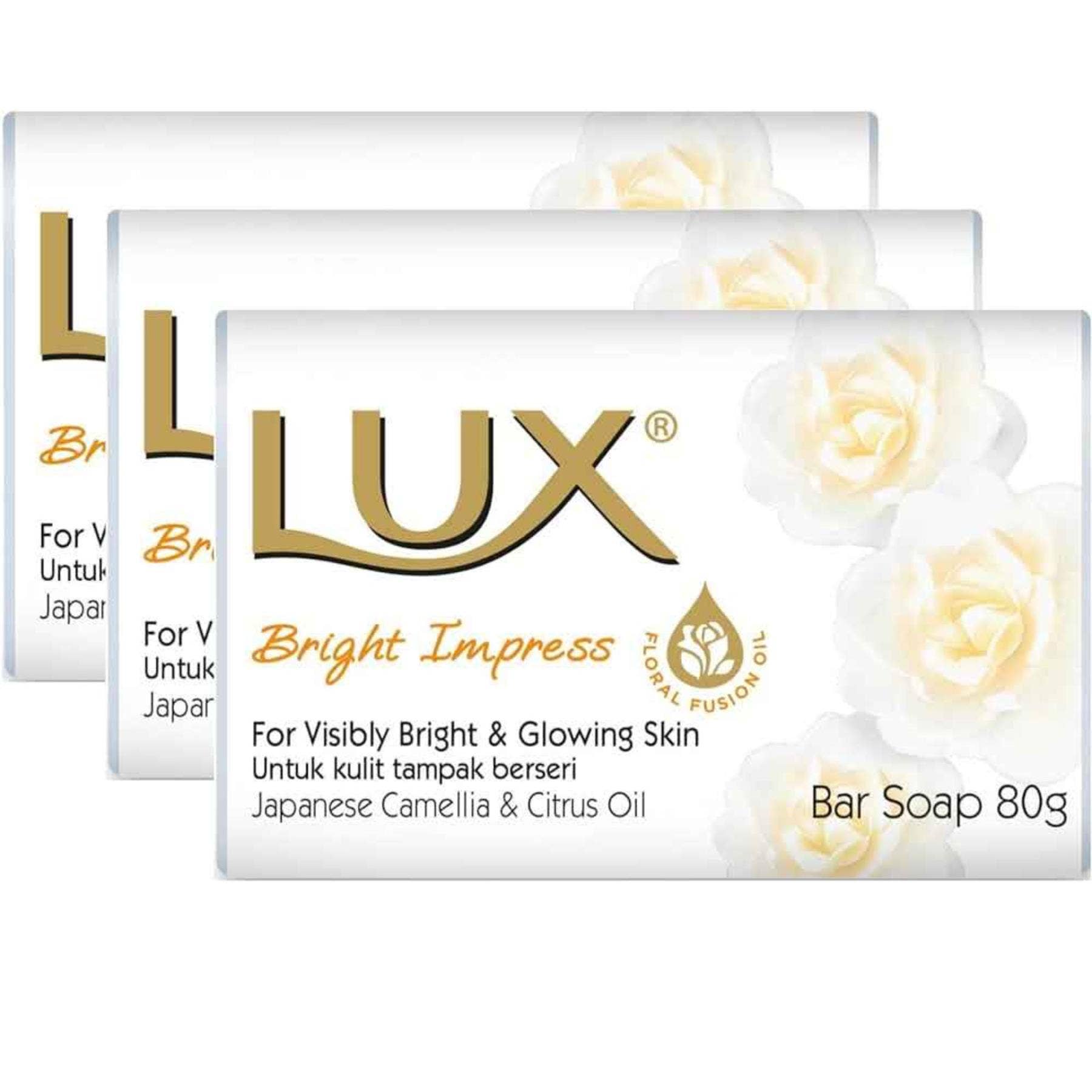 Lux Bright Soap 3 Pack 80g – Brightening Beauty Soap Bars with Creamy Lather for Radiant, Smooth and Fresh Skin