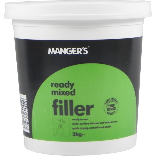 - Mangers Ready Mixed Filler is ideal for repairing and filling cracks, gaps and holes in most common surfaces, both indoors and outdoors. It dries to a tough weather resistant surface that is smooth and easy to sand and is so strong that it will take screws and nails when fully set. Ideal for use on walls, ceilings, doors, skirting and window frames.