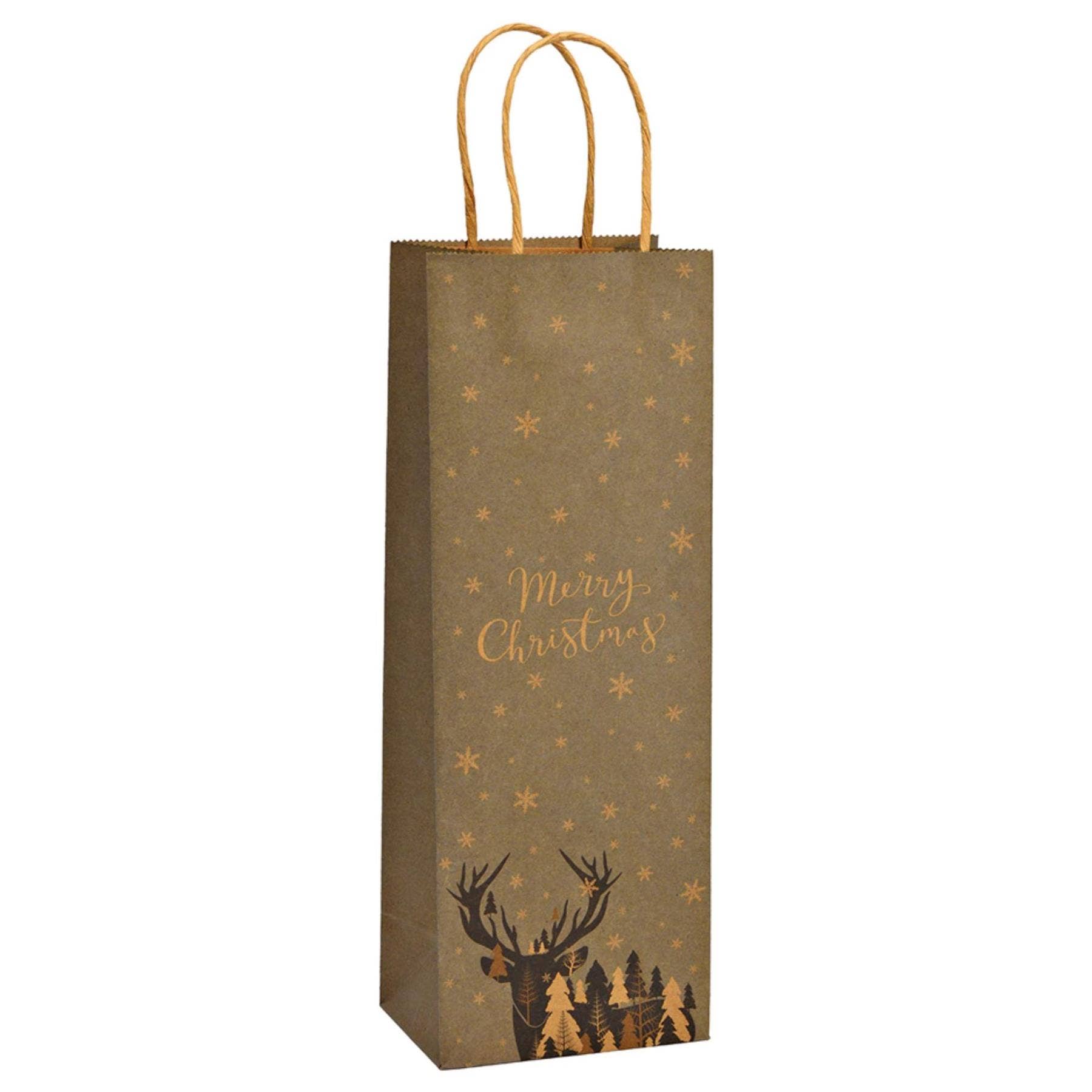 Merry Christmas Deer Design Bottle Gift Bag I Brown Kraft Paper Wine Bag 12x35x9cm