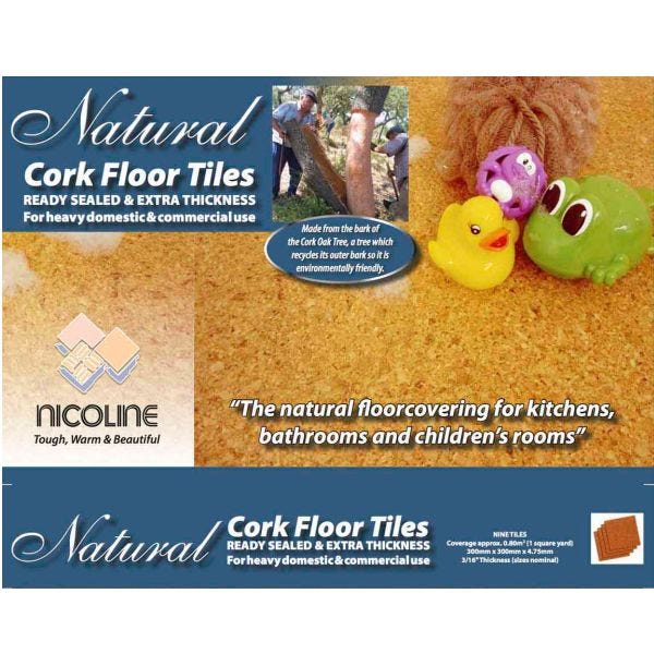 - Nicoline Cork Floor tiles are made from heavily compressed cork granules made up of thousands of tiny air cells that 'give' and then spring back into place.
