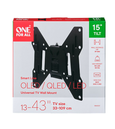 Maximise your TV viewing experience with the One For All Tilt TV Wall Bracket, designed for TVs from 13 to 43 inches. Whether you're upgrading your lounge or optimising space in a bedroom, this universal wall mount combines sleek design, durability and adjustability. With a convenient 15° tilt functionality, you can reduce glare and find the perfect angle for comfortable viewing. Built for safety, this bracket supports TVs up to 50 kg and includes all the mounting materials you need for an easy installation. Compatible with a range of VESA sizes from 75x75 to 200x200, this bracket is the ideal solution for modern screen mounting.
