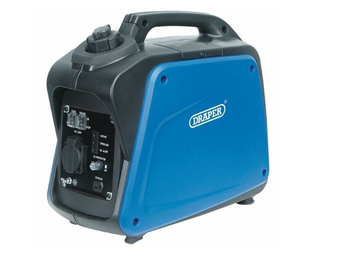 This powerful generator is light and compact, compared to traditional generators, and is fitted with a carry handle. The generator is powered by a 4-stroke petrol engine with an easy pull recoil start. It is quiet and runs continously for 4.8 hours at 100% load. It includes pure sine wave inverter technology capable of providing clean and stable running of sensitive electrical and electronic equipment such as laptops, microwave ovens, induction hobs and TVs. The generator includes a 230V socket and 12V DC output. Supplied with 12V DC charging lead and basic toolkit. Compatible with E10 Fuel.