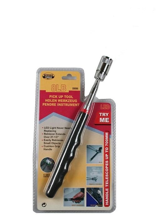 - Pick up tool deluxe with magnet and led lighting to pick up hard to reach metal objects.