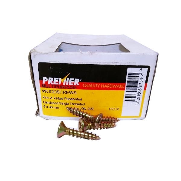 Premier Multipurpose ZYP Woodscrews 6.0 X 30mm - Box Of 200