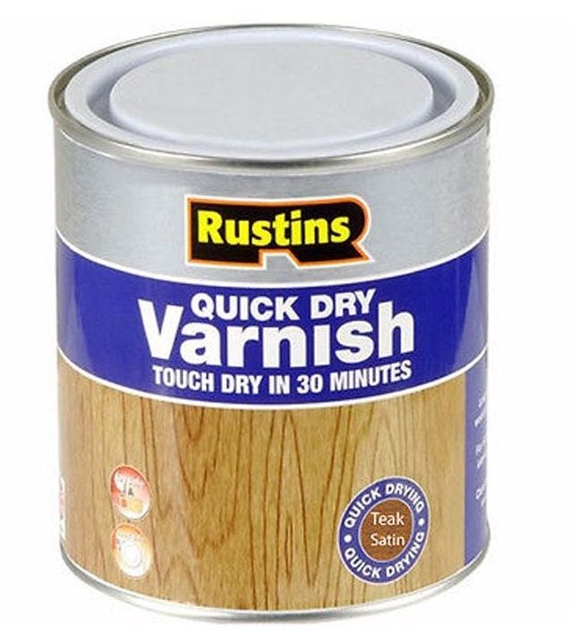 - Rustins Quick Dry Coloured Varnish Satin Teak is touch dry in 30 minutes