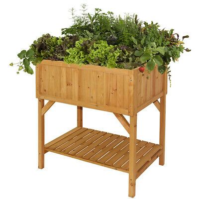 - This Raised Bed is perfect for growing shallow rooted vegetables such as radishes or spring onions and salad varieties. Features a shelf underneath the planter department, this is perfect for storing garden equipment whilst gardening.