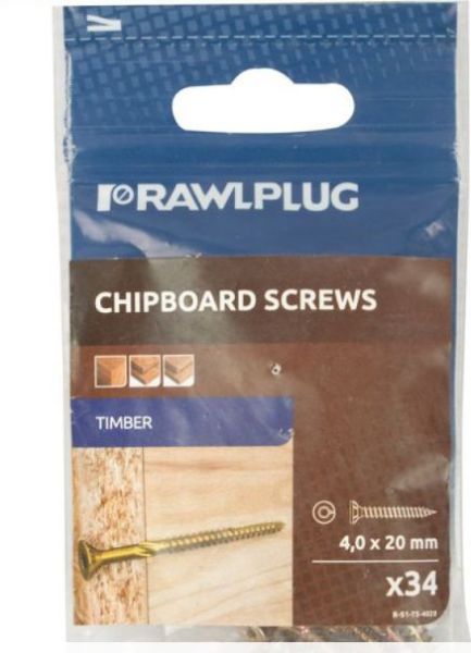 Rawlplug Chipboard Screws - 4.0 x 20mm