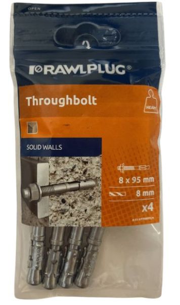 Rawlplug Throughbolt M8 x 95mm - Pack of 4