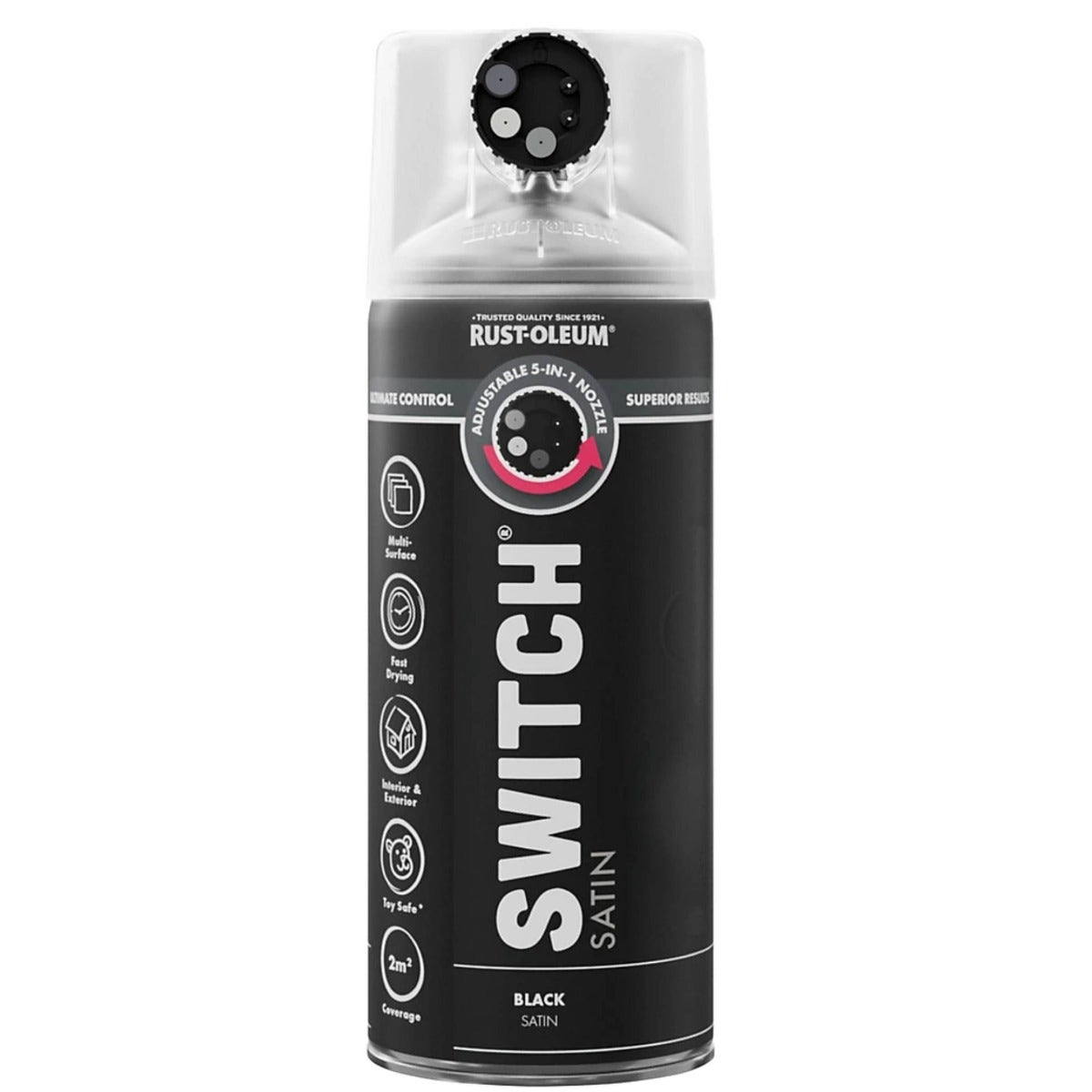 Rust-Oleum Switch Black Satin Multi-Surface Spray Paint 400ml – 5-in-1 Adjustable Nozzle