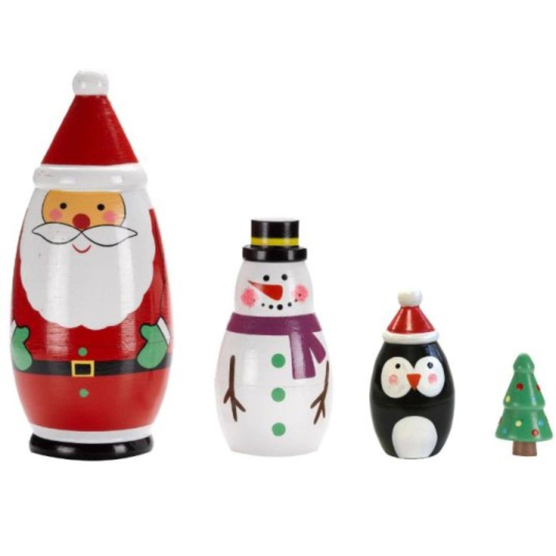 Four individual figurines nest inside one another for a fun, space-saving festive surprise.