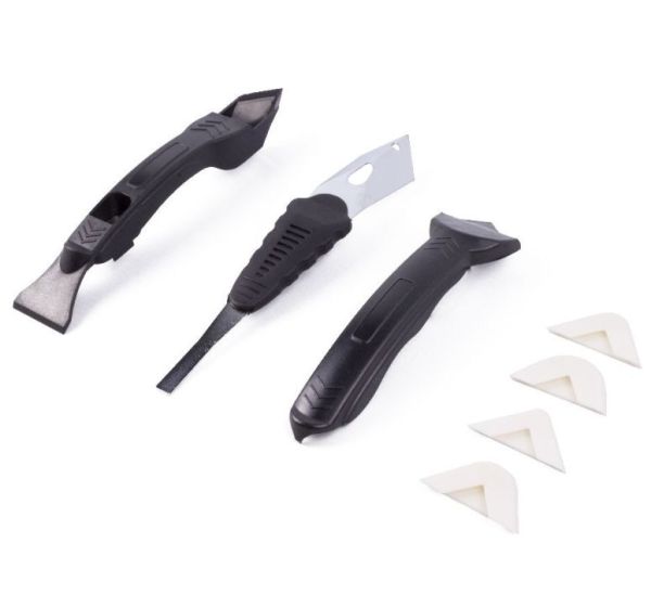 - 3 handy scrapers to remove silicone, glue, etc.