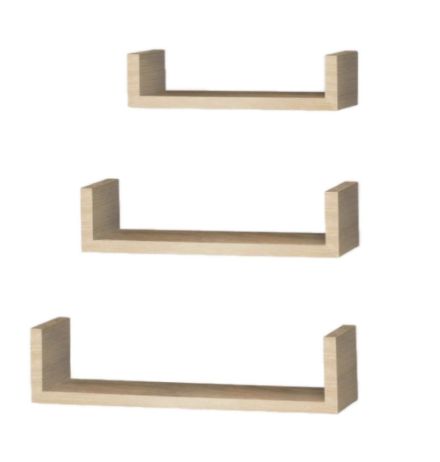 Set 3 Floating U Shelf Kit Oak