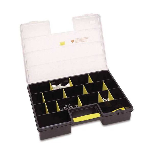 - Special lid structure - upper ribs interlocking with inner dividers - Keeps small parts in place and prevents movement from one compartment to another