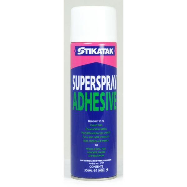 - General purpose aerosol adhesive DCM and CFC free for perimeter fixing of felt and foam backed carpets, underlays and tiles