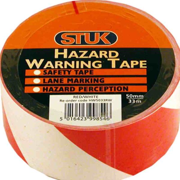 Stuk Red / White Hazard Warning Tape - 50mm x 33m