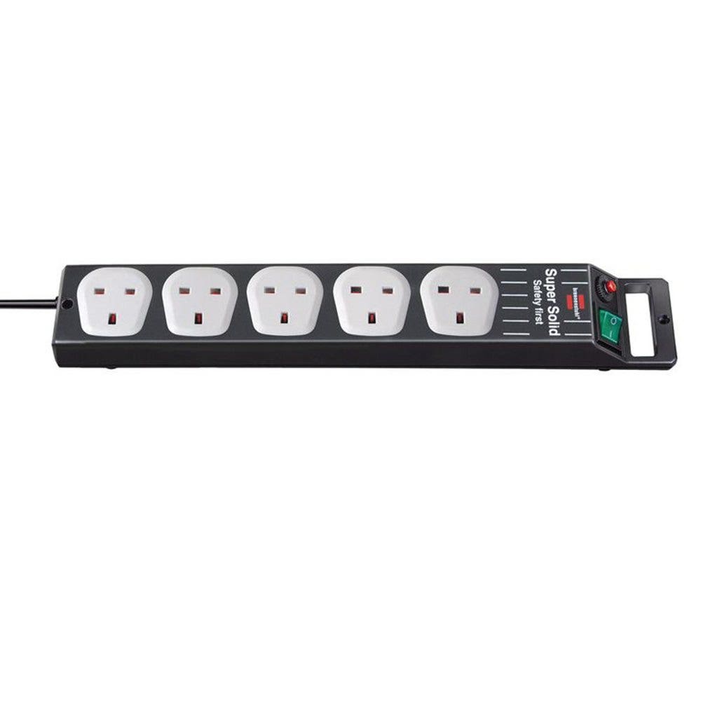 Super-Solid Black 5-Gang Surge Protection 2.5m Extension Lead