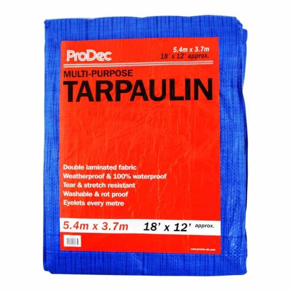 - A Heavy duty multi purpose blue tarpaulin (5.4m x 3.6m) manufactured from double laminated polypropylene fabric
