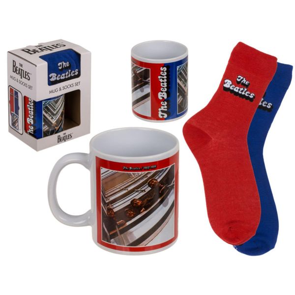 Both the mug and socks feature classic Beatles imagery and colours that celebrate the band’s legacy.