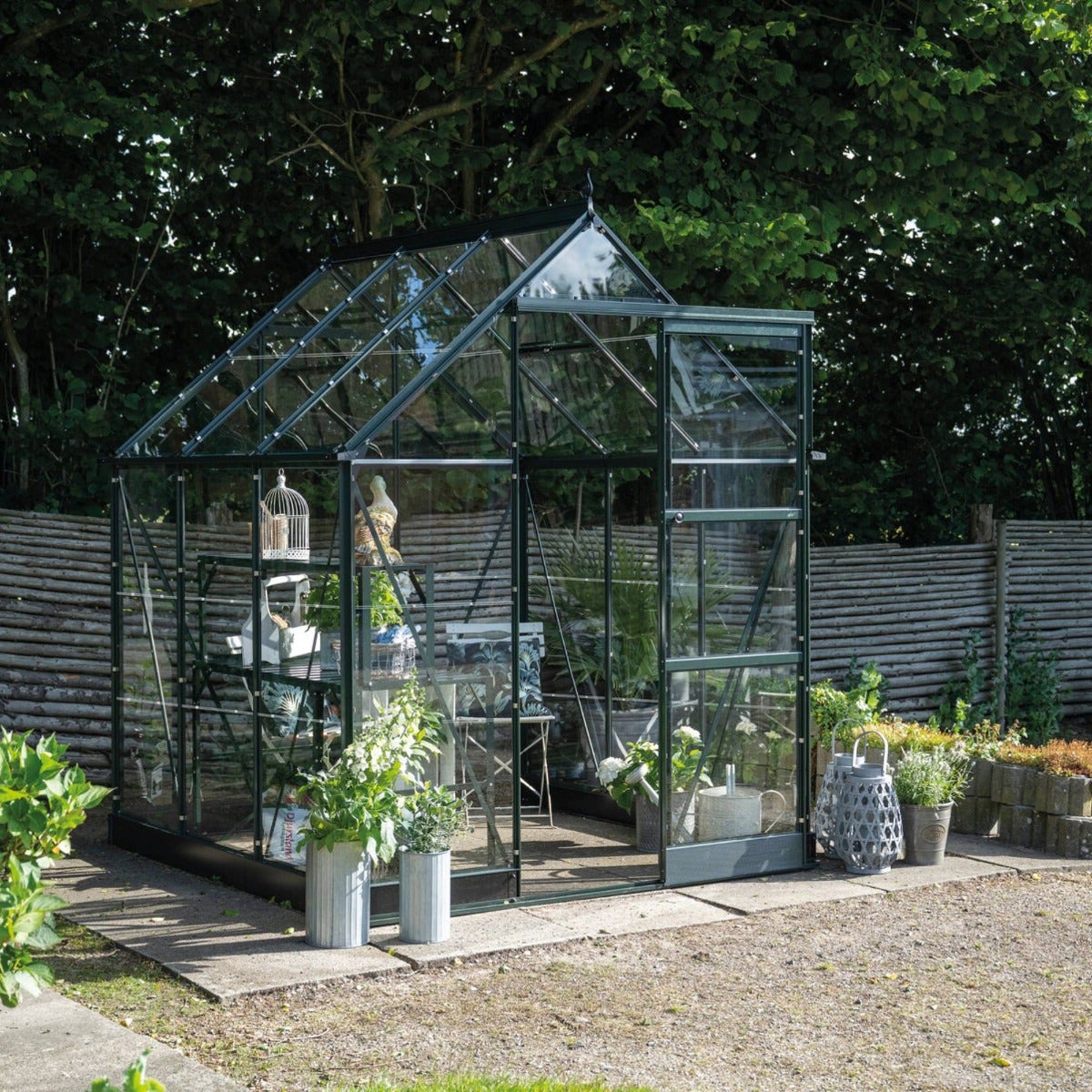 Halls ICON 6 (6x6) Greenhouse – Green Powder-Coated with 3mm Toughened Glass