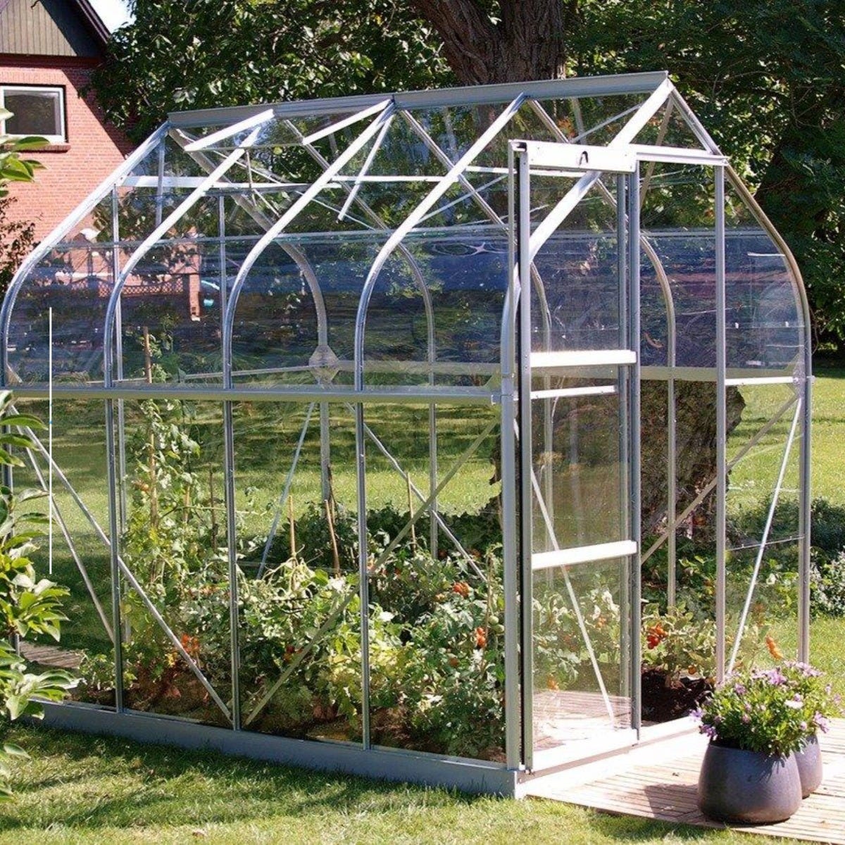Access is smooth and effortless thanks to the single sliding door, while an opening roof vent helps regulate heat and humidity to maintain a healthy growing climate. Integral gutters make collecting rainwater simple and environmentally friendly. The structure features a tarnish‑resistant anodised aluminium frame reinforced with roof and corner bracing for added stability, ensuring dependable performance in varied conditions.