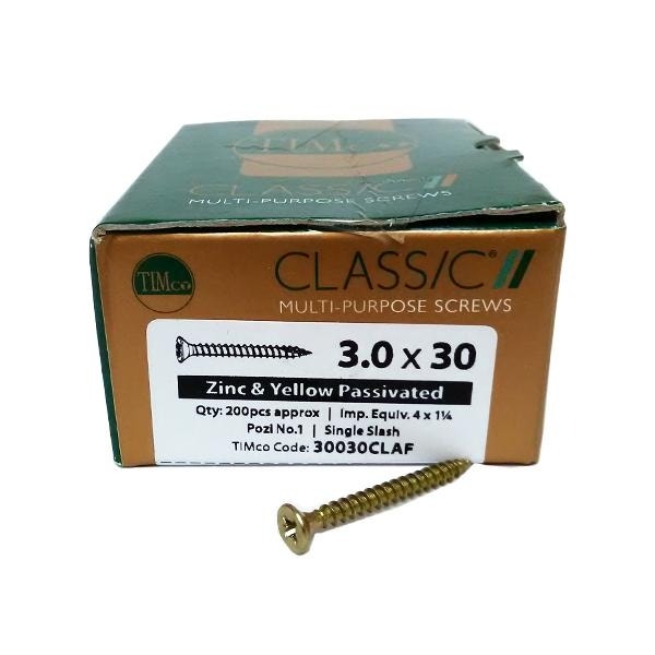 Timco Classic® PZ1 CSK - ZYP Pozi Wood Screws 3.0 x 30mm - Box of 200