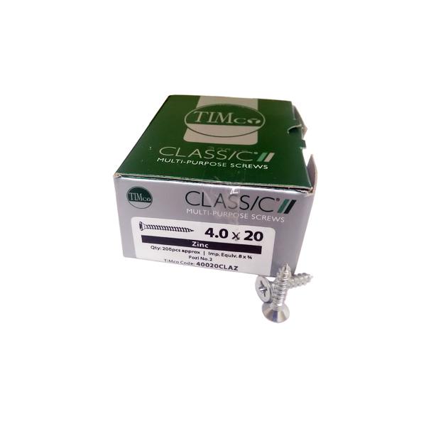 Timco Classic® Zinc Pozi Wood Screws 4.0 X 20mm - Box Of 200