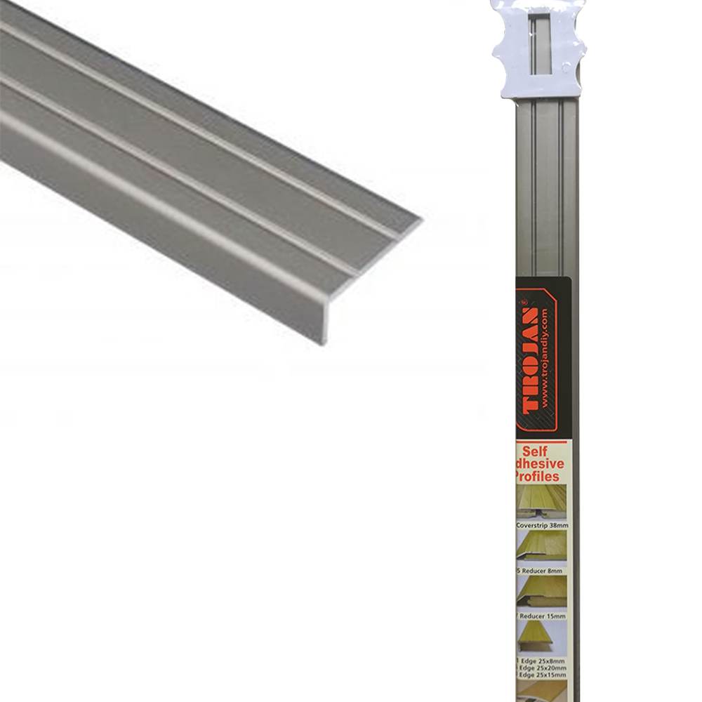 Trojan Self-Adhesive Angle Edge Profile - 25 X 8 X 0.9m Brushed Silver