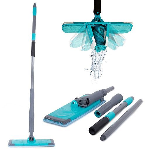 - It has a 360-degree rotating head and an adjustable mop stick, thanks to which it can reach all nooks and crannies
