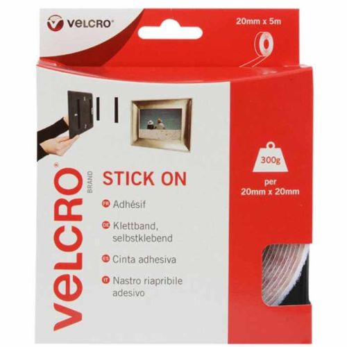 VELCRO® Stick On Tape 20mm x 5m - White (Holds 300g)