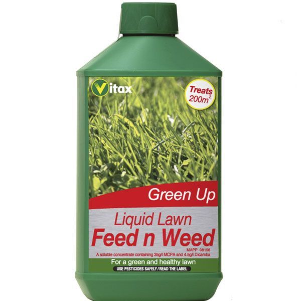 - Liquid lawn feed and weed treatment