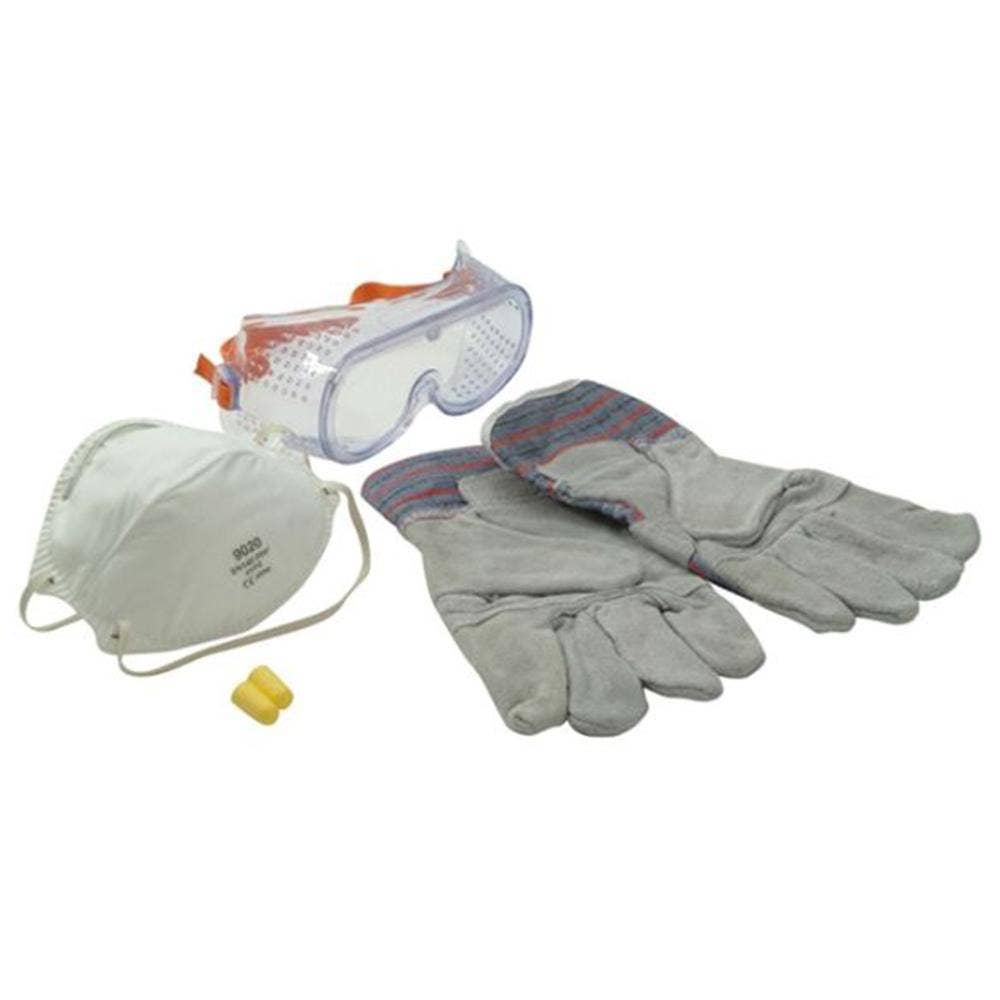 - Includes Safety goggles, Ear plugs, Respirator and Gloves.