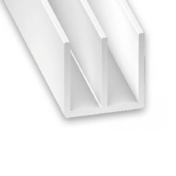 White PVC Double U-Shaped Squared Profile - 21mm x 10.5mm x 1m